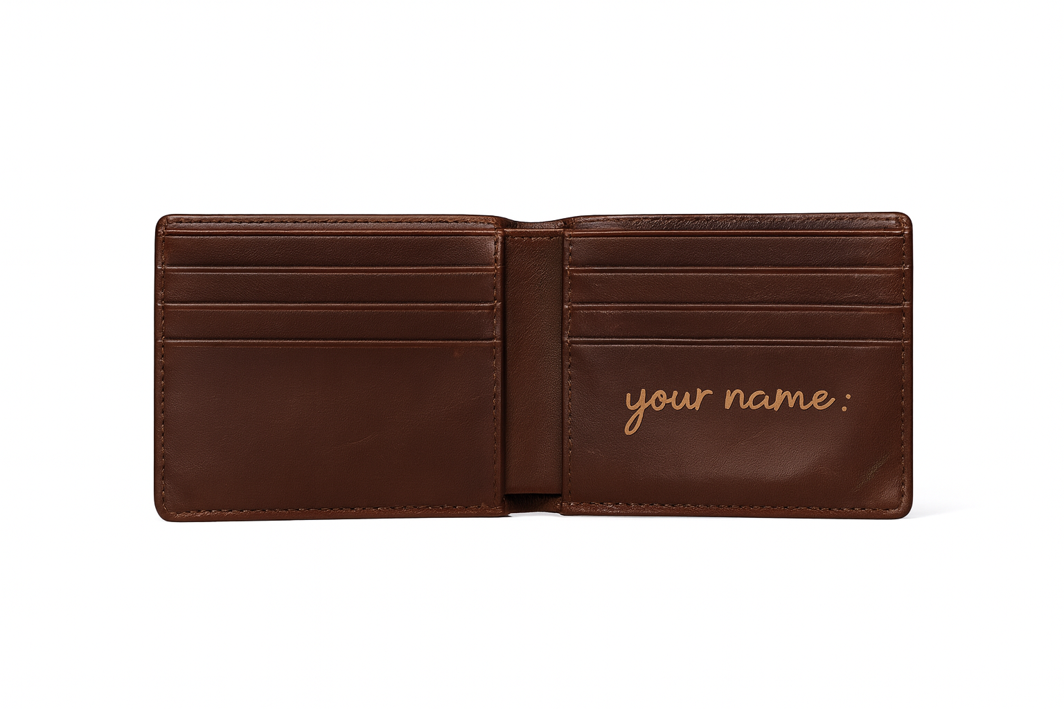 Check out our premium engraved customizable leather wallet! It's made from top-notch full grain leather and you can add your own personal touch with a custom engraving. It's the perfect way to keep your essentials safe while showing off your exquisite style.